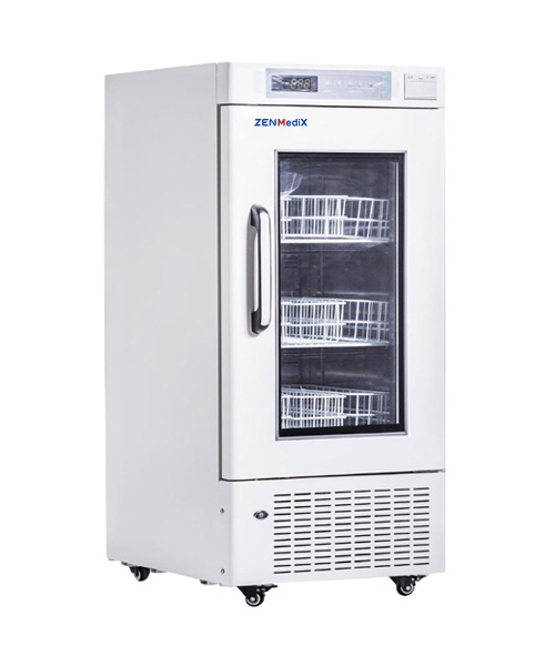 Interior consists of two drawers of aluminum on telescopic runners with stops. Stacking height: 23 cm. Capacity per drawer app. 25 blood bags, each 500 ml size.